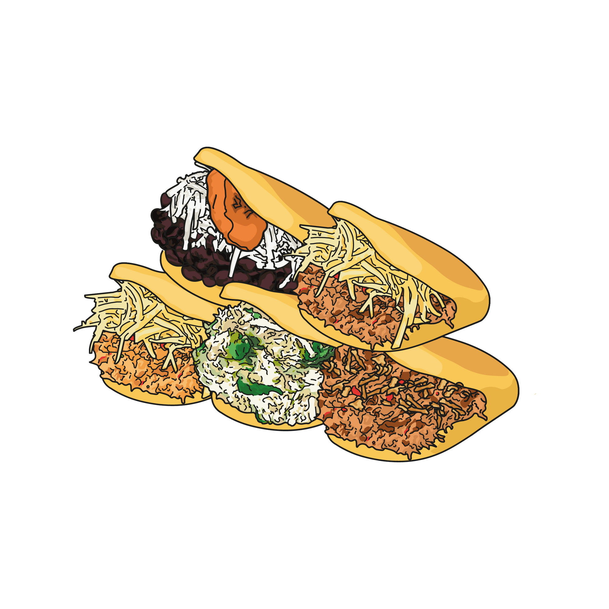 Pequeñas arepas fritas con distintos rellenos, perfectas para compartir.